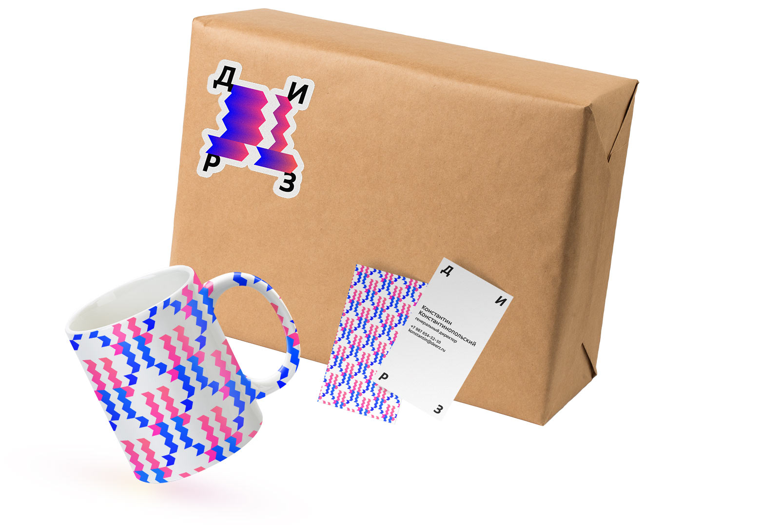 The logo is built around a zigzag that resembles a classic knitting pattern. The rows of zigzags join to form the letter Д, the first letter of the company’s name.