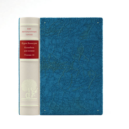 No, still too morbid. Trying using crumpled paper of different colors for the covers, leather for the binding edge, and luminescent highlights: