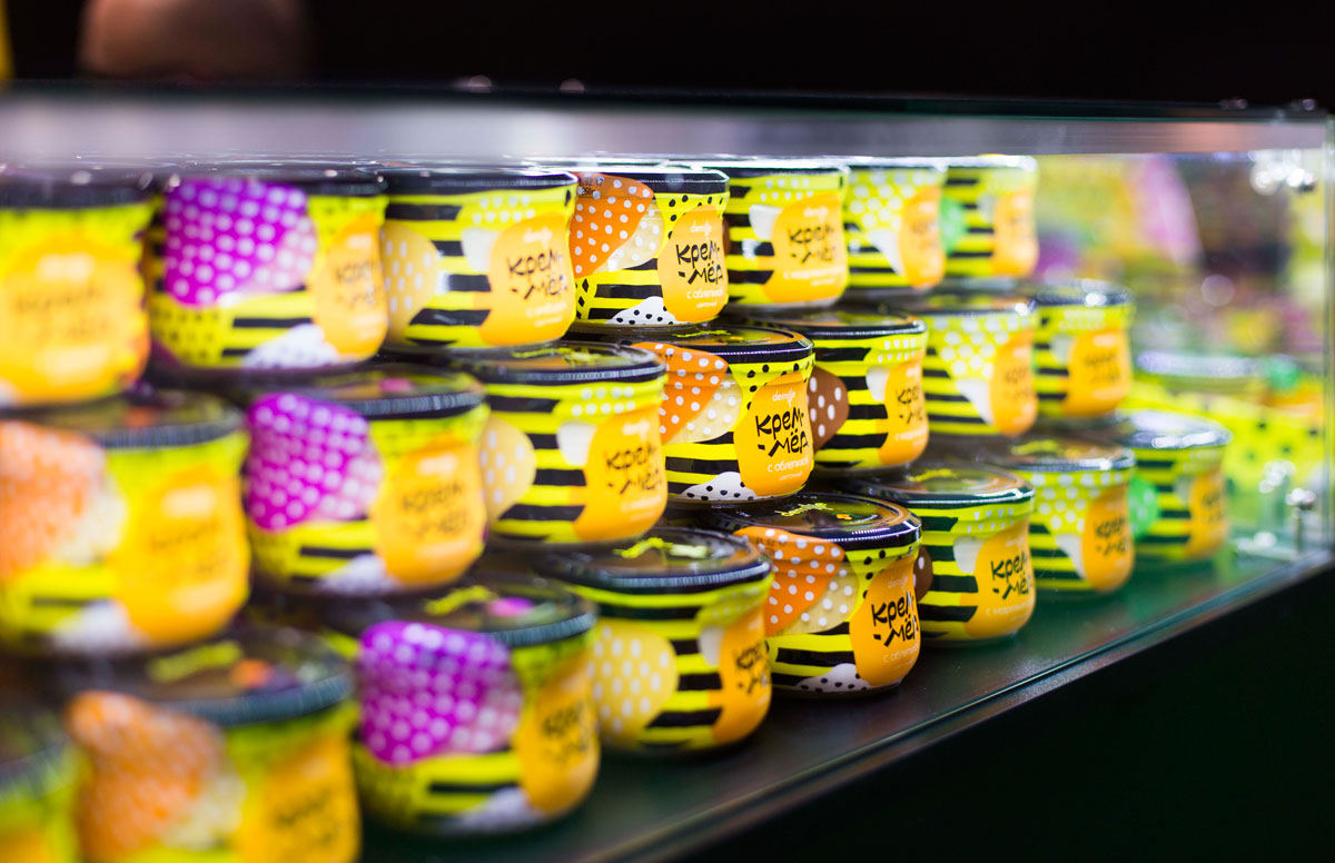 Demilie produces various flavors of creamed honey and sells it in beautifully designed packaging. To present the company at the Prodexpo 2017 exhibition, an attractive stand was designed at the studio.
