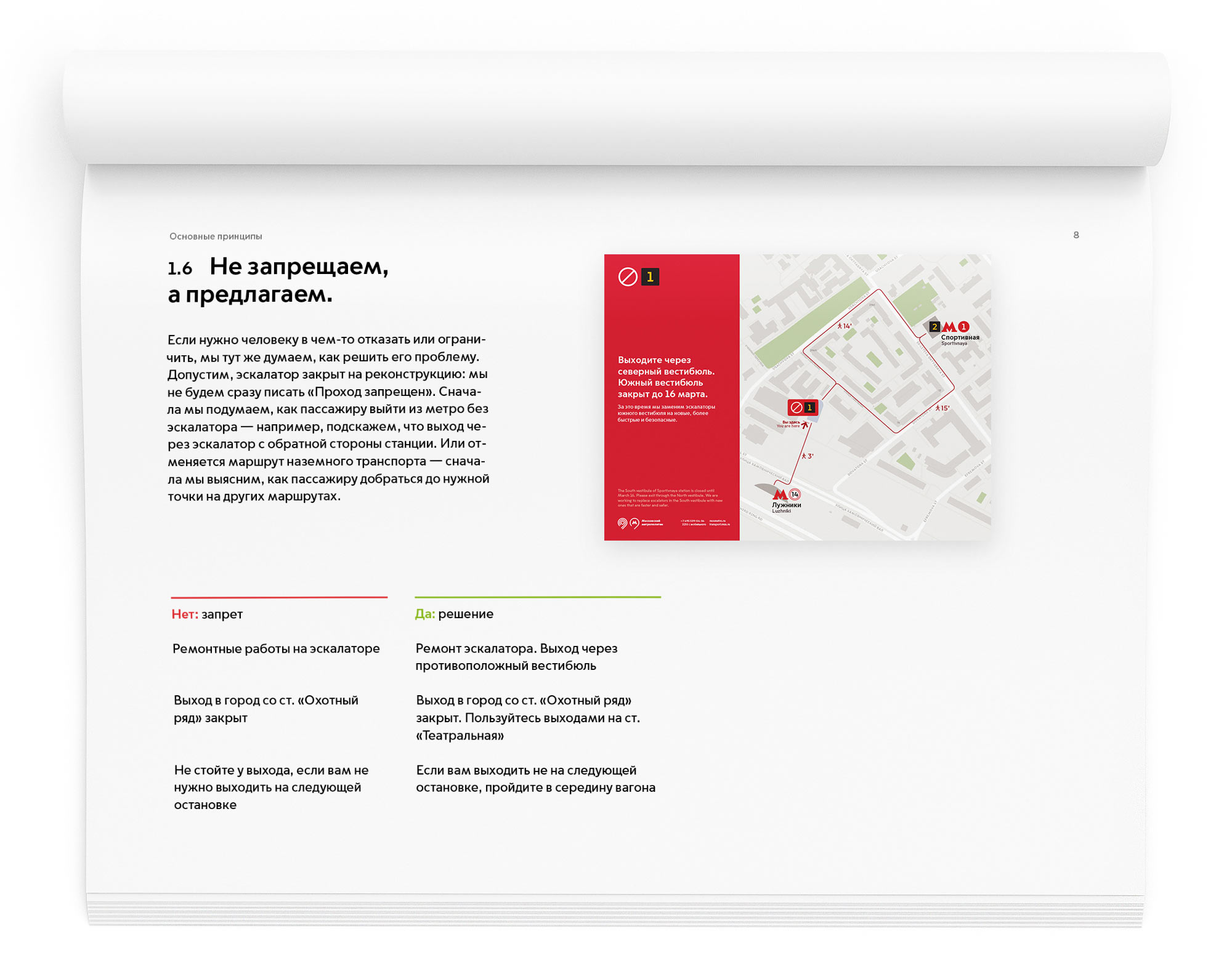 For the first time in the history of Moscow Transport, communication is built around a useful action for the passengers. Now each poster, announcement and message have a service function: they do something useful for passengers. Instead of prohibiting, they explain how to solve a problem. Technical and formal terms such as “increased passenger flow” or “motorized vehicle” are no longer used.