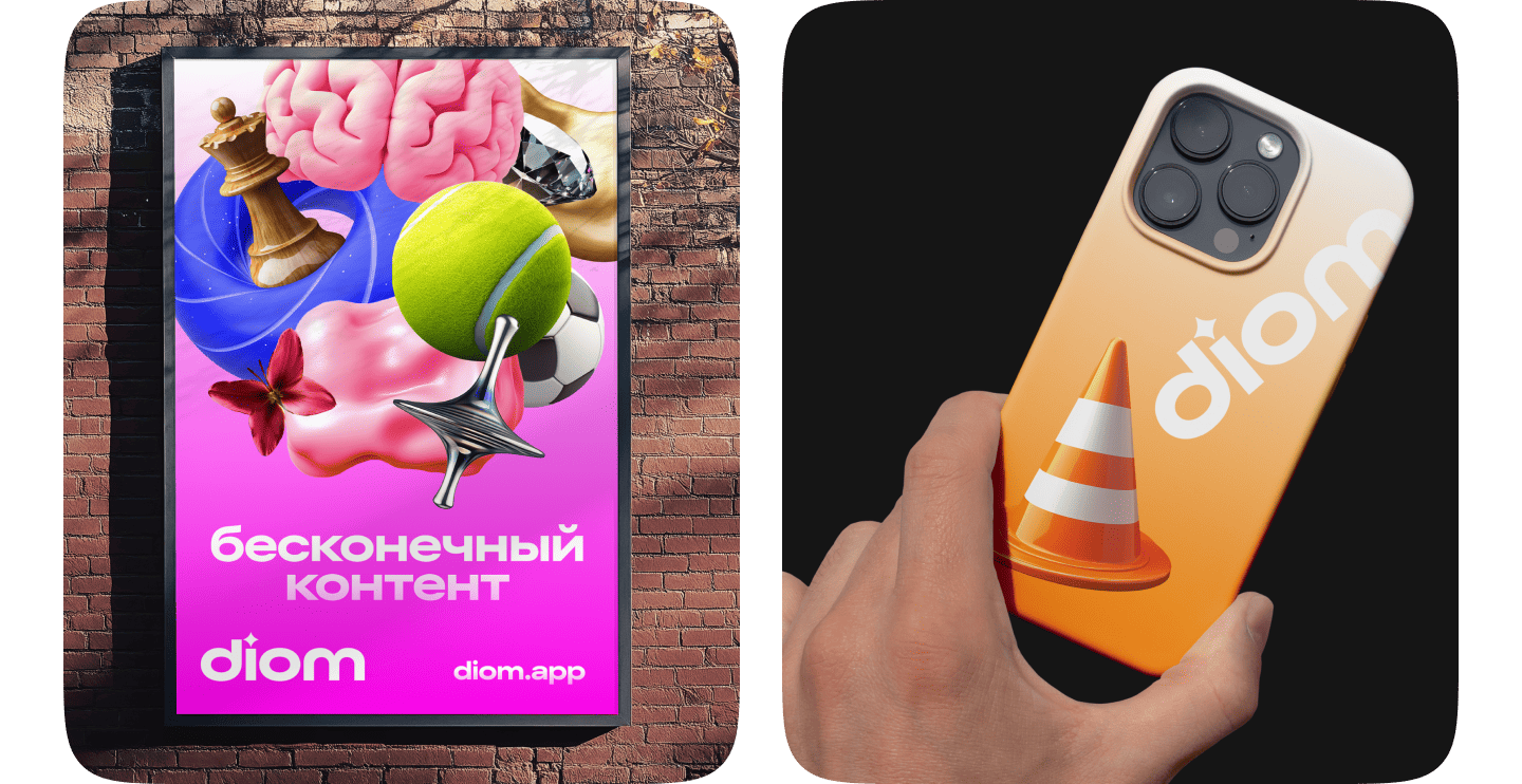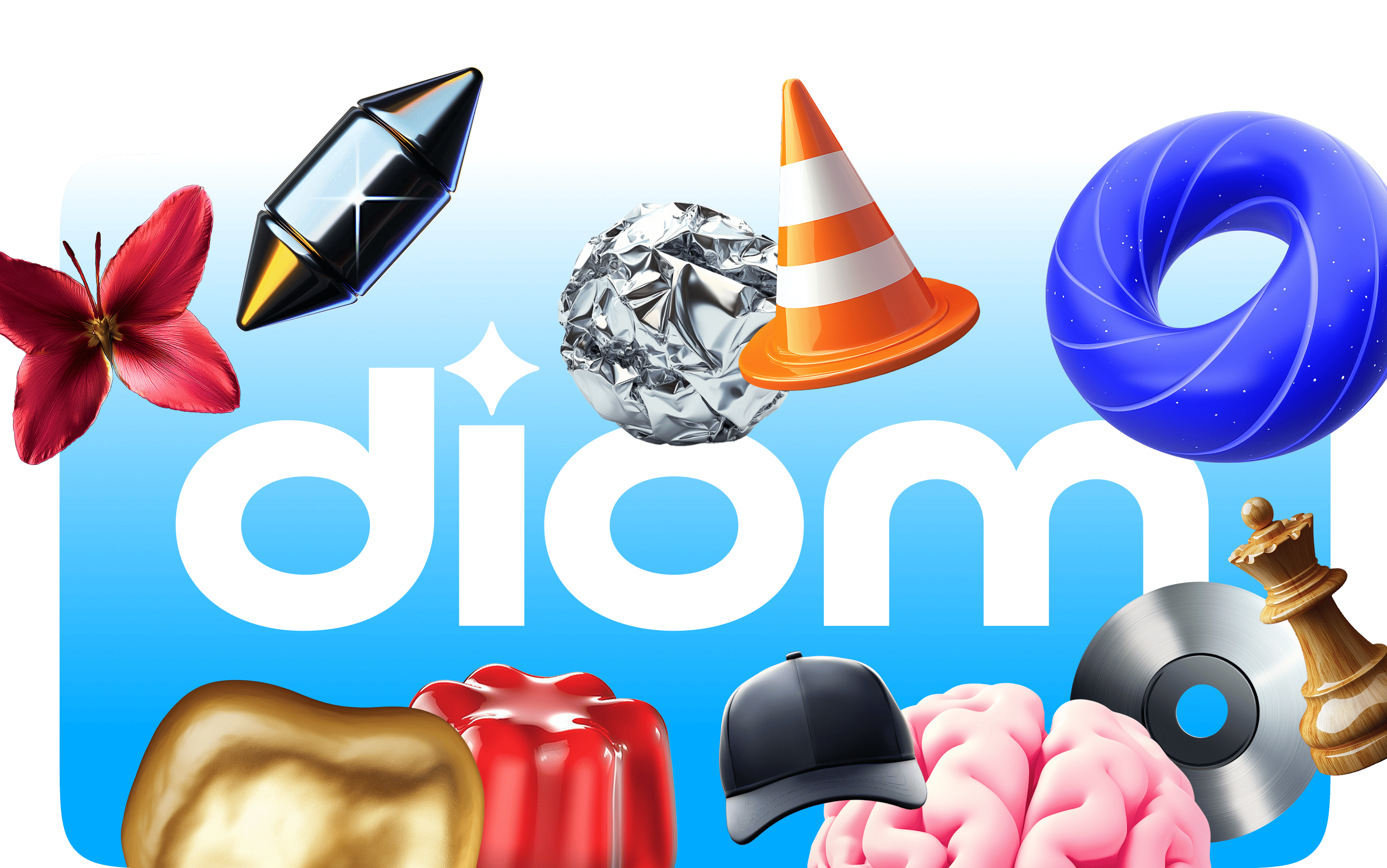 Diom is a complete digital universe for communication and entertainment. Content creators use the platform for personal self-expression and to monetize audience interest. The app’s logo was designed to be clean and restrained, and from there, a bold brand identity was developed.