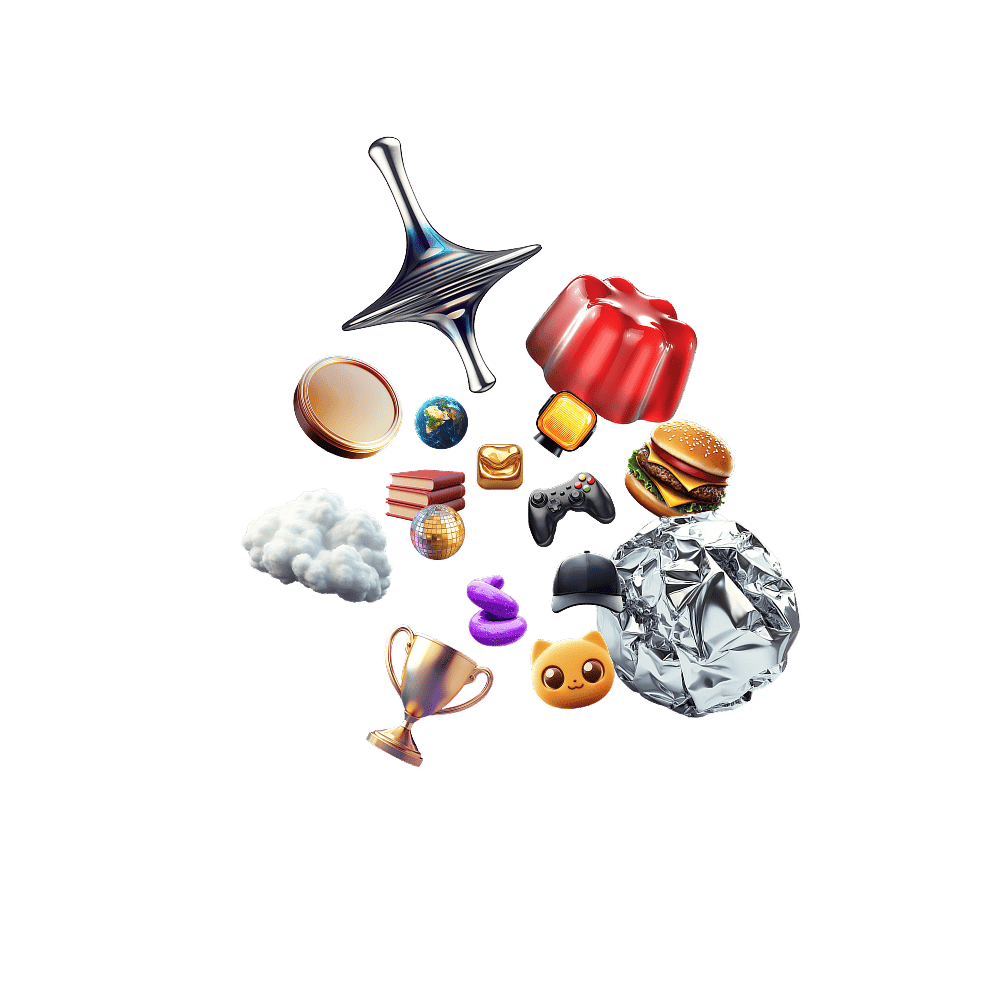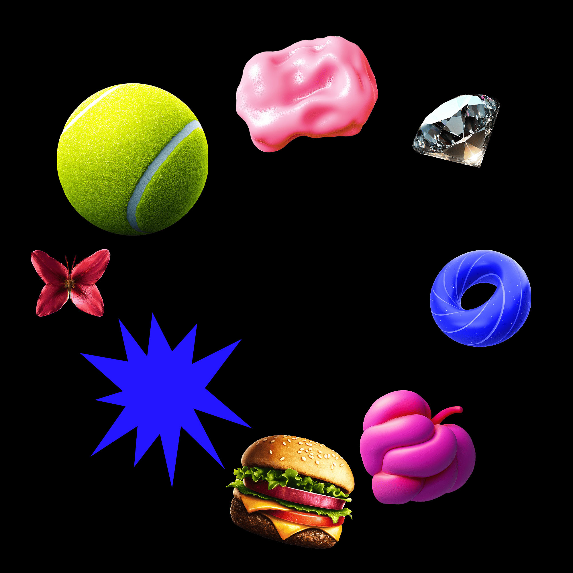 Additional elements of the brand identity include hyper-realistic illustrations of users’ interests. Lots of visually appealing, shiny and captivating designs were created for the project in the studio.
