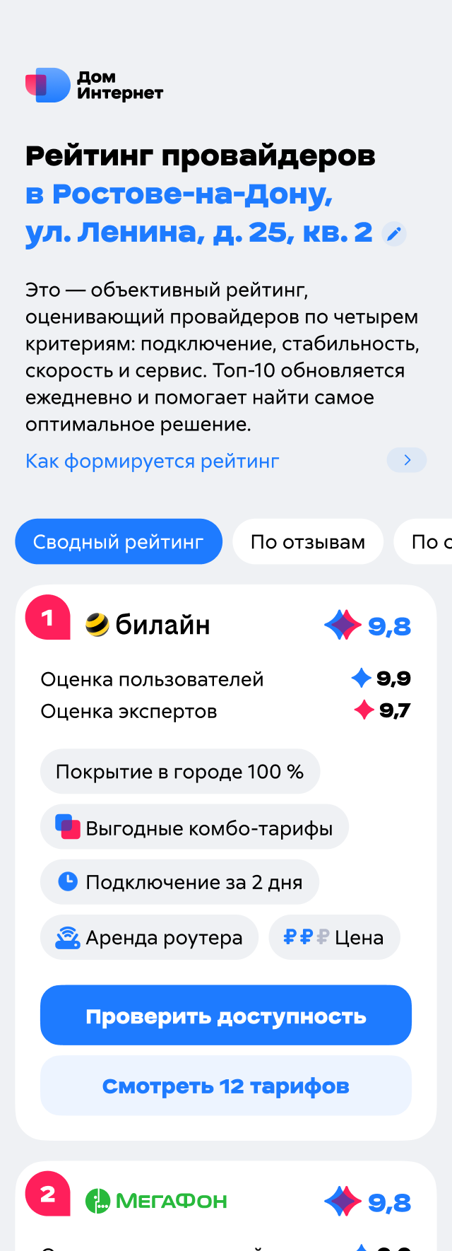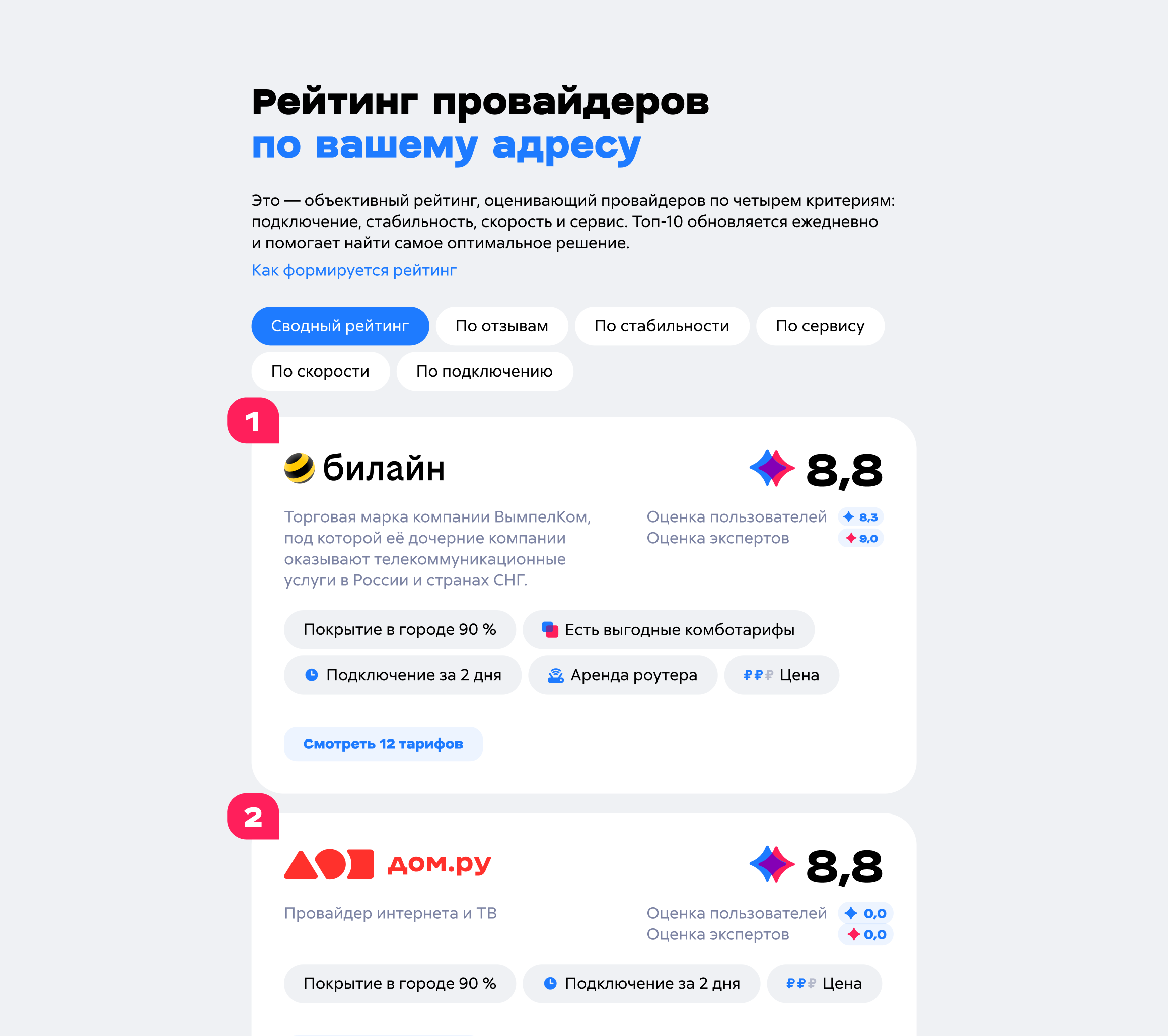 One of the website’s standout features is the provider rating system. A unique top list of providers is generated based on each user’s input data.