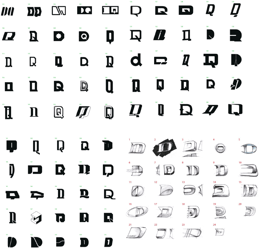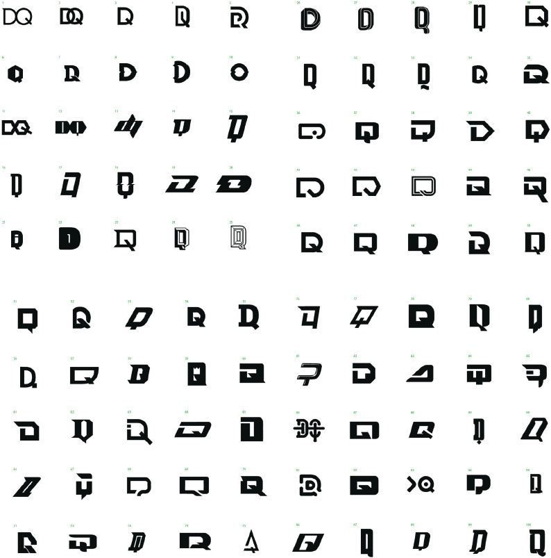 Inviting another designer to the project and generating ideas. Trying to mix the letters D and Q to achieve a more original shape, also trying to hint at IQ.