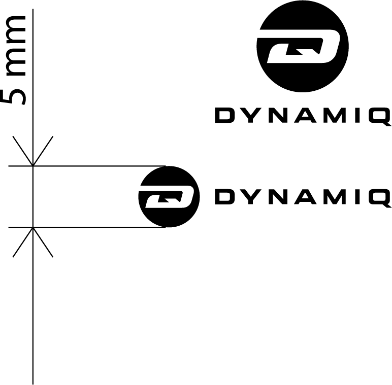 The logo has to consist of a symbol and a text. The text portion should read “Dynamiq” in English.