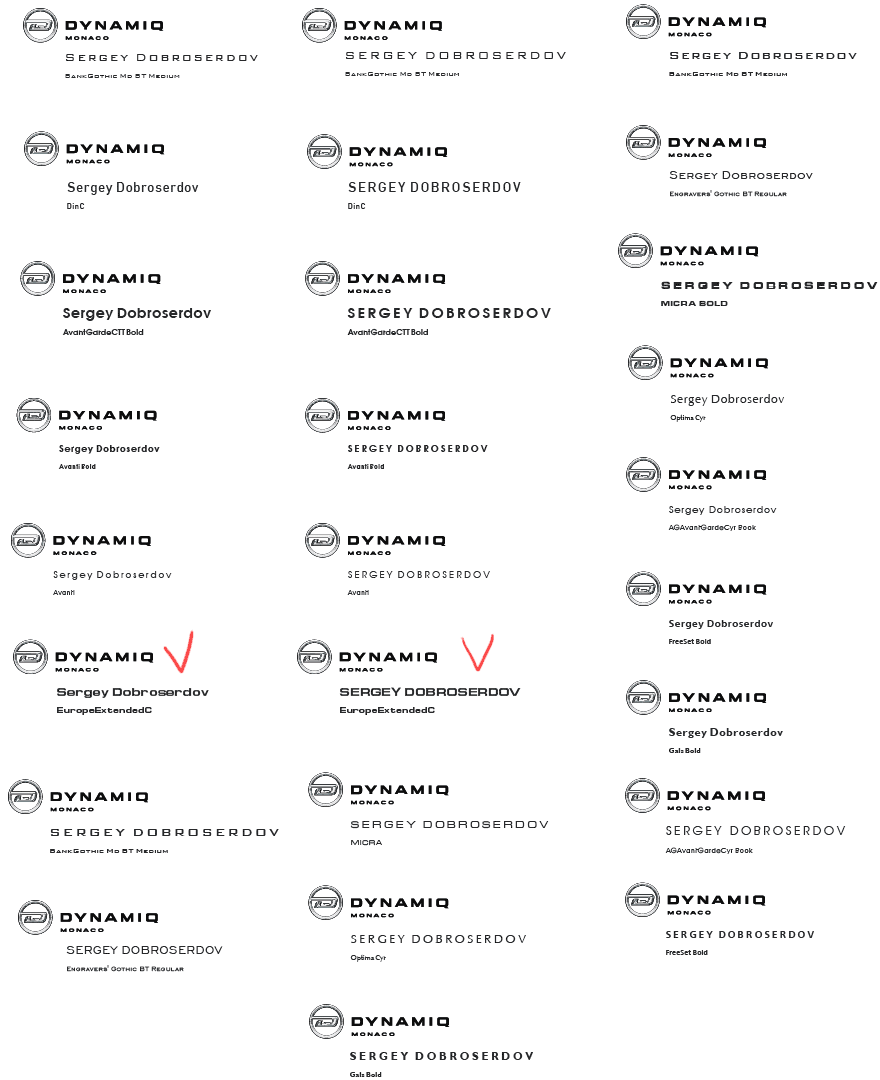 Client: All we need is simply a typeface that is both strict and modern. The solution you presented evidently employs stylized elements. We would like to see alternatives that are close to the symbol but are less similar. You need to create variants in the similar style but without using the elements of the style or the symbol.