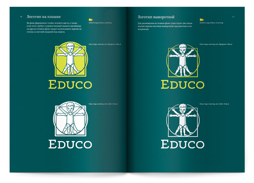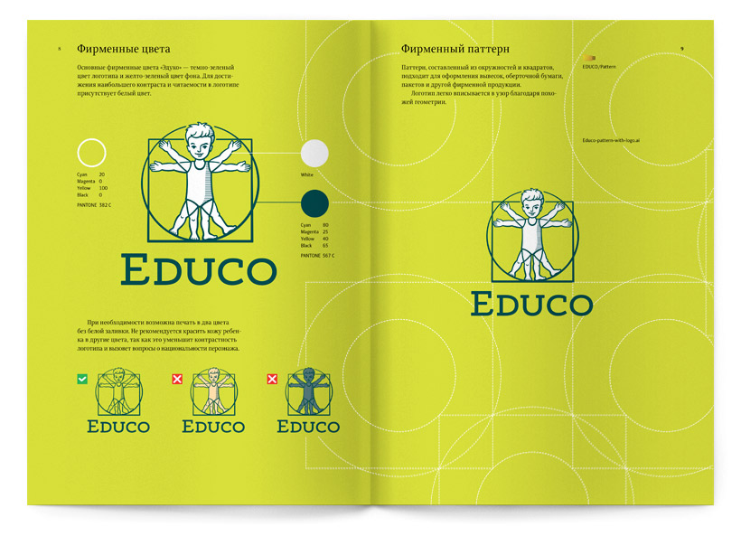 The rules on using the logo are given in a brief guide, which also includes recommendations on choosing the colors and using the corporate pattern on various surfaces.