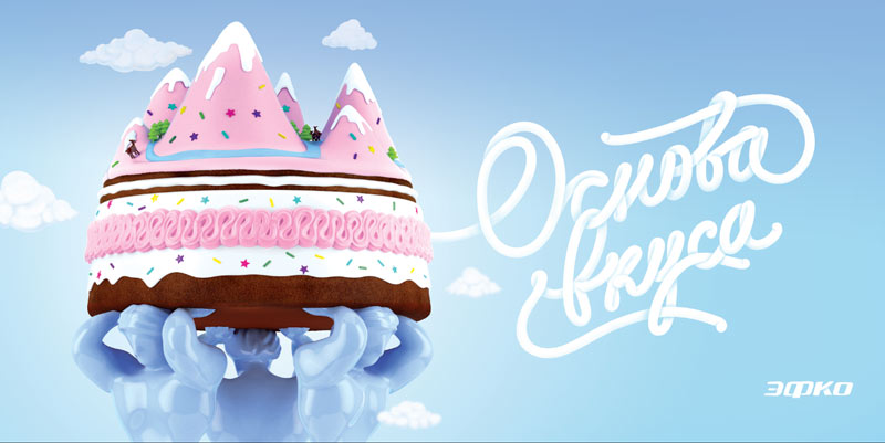 The client chooses a few: the atlases, the elephants, the slogans and the cookie machinery. Also the one with pieces of cake.