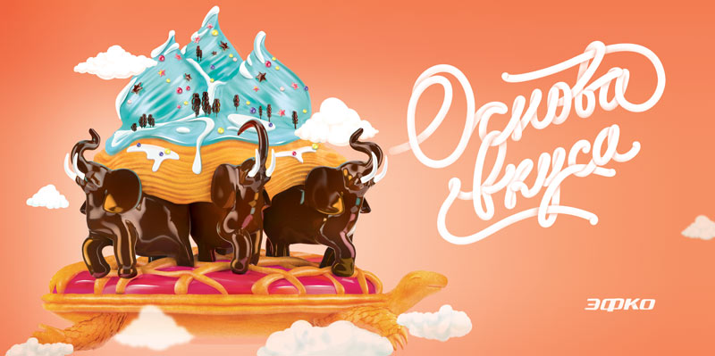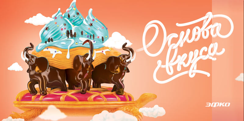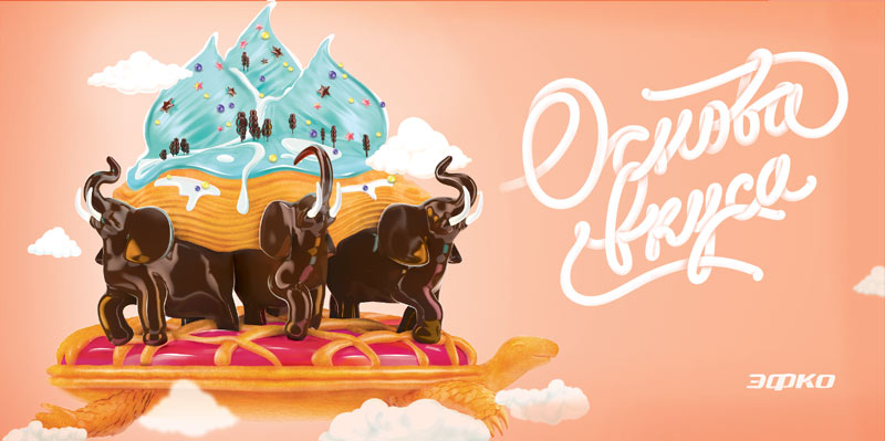 Or maybe look at it from a global perspective: elephants, atlases, the Earth made of creme and crust?