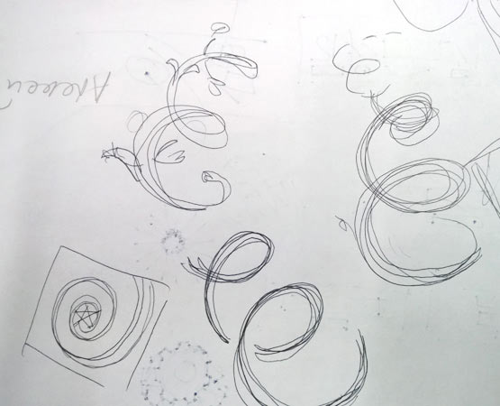 The art director approves adding a curl to the spiral. Suggesting new options.