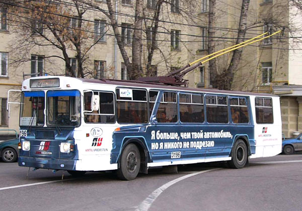 Ads on trolleys remind drivers that the vehicles lofty price and huge size are no excuse for rudeness on the roadway. ![]() ![]() |