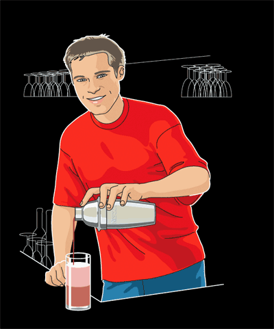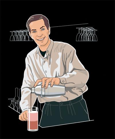 The client asked me to draw a barman. I did. He came out dressed in nice clothes with a dignified phiz. He kind of resembled one TV announcer, but oh well. Honestly speaking, I am better with drawing cute chicks, and guys are not my strong point. |