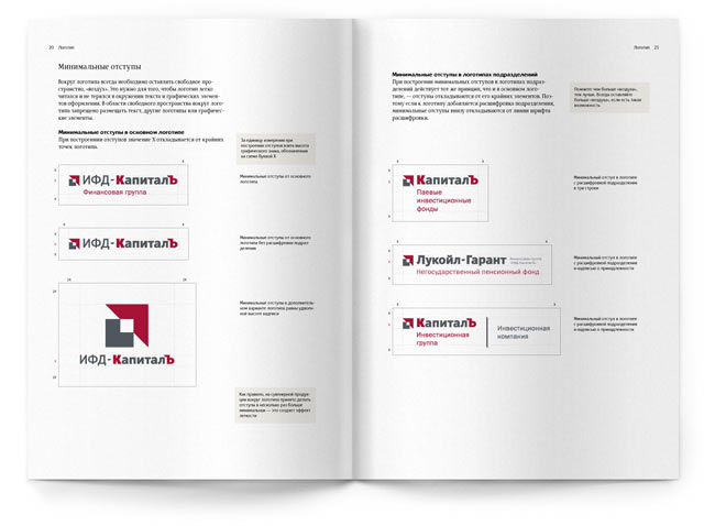 The updated logo is used by all companies of the group: Petrocommerce Bank, the Kapital Insurance Group, the Kapital Investment Group, several pension funds, the managing company and Ukrainian offices. Each of them got a ready-to-use logo with the sign and the typeface.