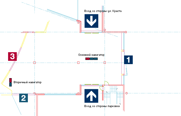 ![]() To define the best position of the navigator, we used life-size dummies ![]() The slim profile navigator does not block the view between the halls |