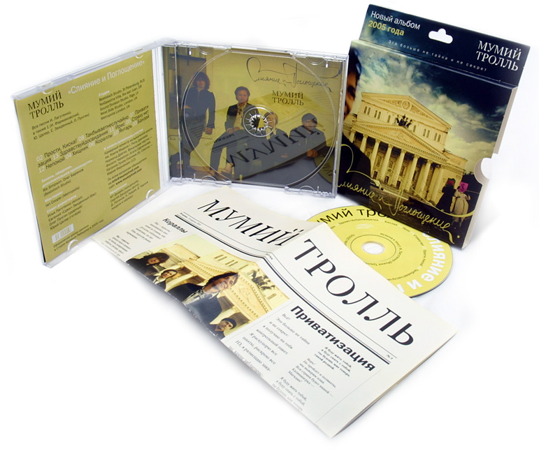 Merger and Acquisition is Mumiy Trolls second album designed in Art. Lebedev Studio. The CD, the booklet and the insert with texts are similarly worth scrutinizing. For example, on the CD cover all tracks are randomly listed: the second track Sorry, pussy! is on top of the list, followed by the eighth track Itcantbeanaccident. On the CD the songs are certainly recorded in the proper order. Theres more than that in there, go buy the CD and see for yourself. |