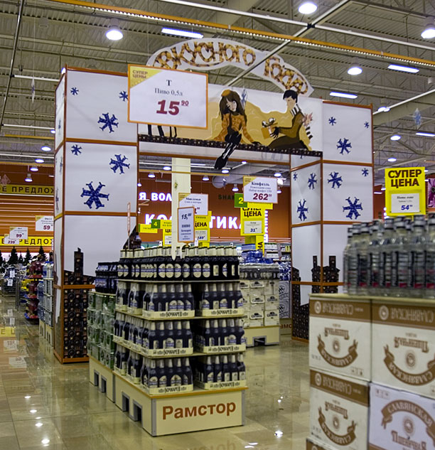 All in all, four Moscow supermarkets have been decorated for Christmas. |