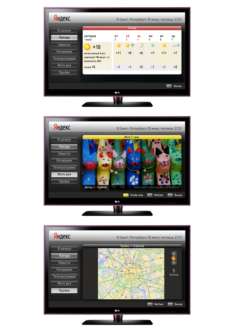 Browsing the screens, the spectators find out all about current weather, traffic alerts, world news and search the TV guide.