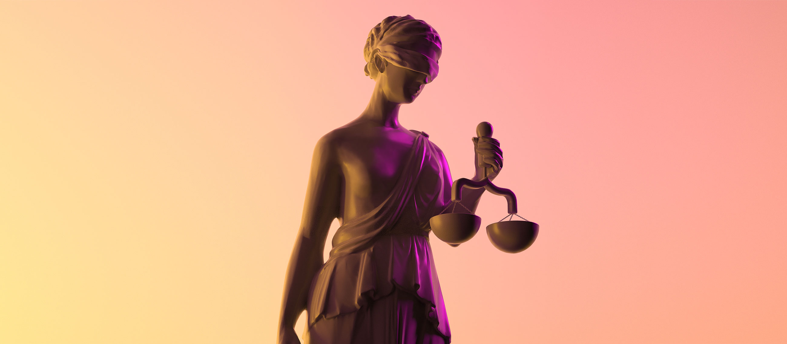 The symbol integrates classic images: a shield, scales and a silhouette of an expert wearing glasses. Combined with white and navy colors, the signature gradient looks great on branded media.
