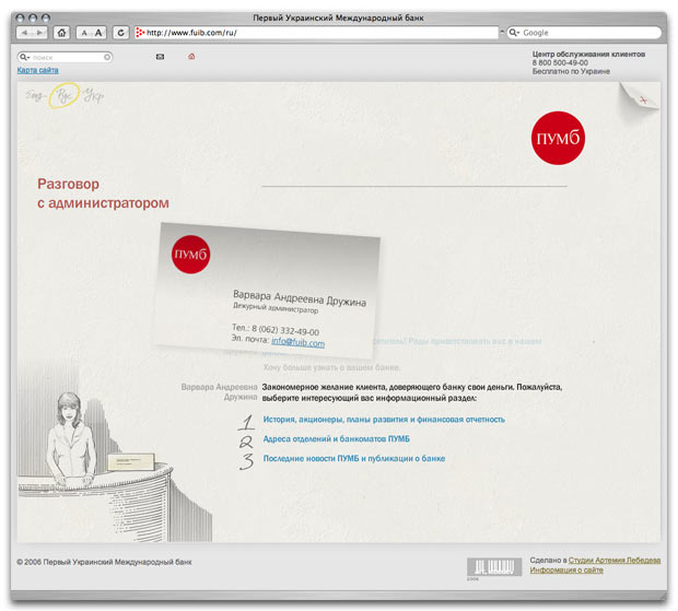 FUIb employees (graphic copies of real people), ready to answer any questions, greet every customer at the door. On the website they are just as forthcoming as in life. ![]() Thats what FUIb looks like inside