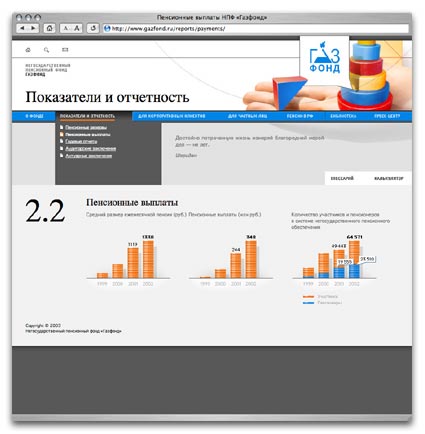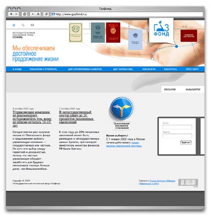 The website features complete information on the funds founders and investors, its investment policy. The Pensions in Russia section contains the history of non-governmental funds development in Russia, information on the pension reform and foreign experience in this field. ![]() Potential customers can take a look at the funds financial reports for the last few years, the procedure of making contracts with private and corporate clients