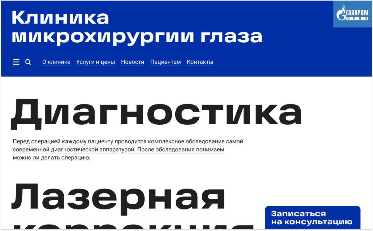 The making of the Gazprom eye microsurgery clinic website