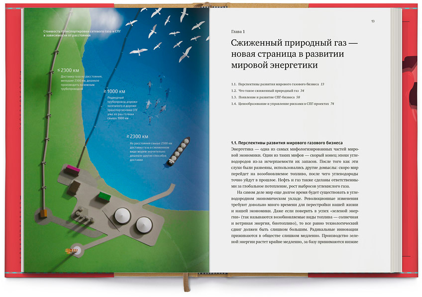 In this book, the eperts from Gazprom summarize all their knowledge on Liquefied Natural Gas—from its first appearance on the energy market to predictions of its future as a part of global energetic balance. The studio worked on the book’s binding and illustrations, getting it ready for print.