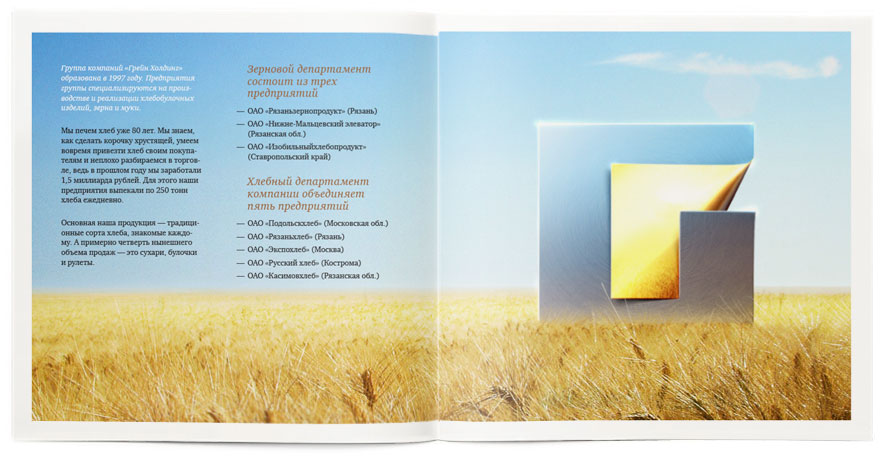The booklet tells about the Grain Holding company and its achievements. It is meant to serve as a guide when preparing corporate papers and advertising materials. ![]() |