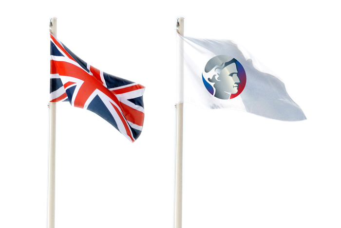 Each company division has its own corporate colors and foreign divisions inherit the corresponding national flag colors. ![]() British division flag