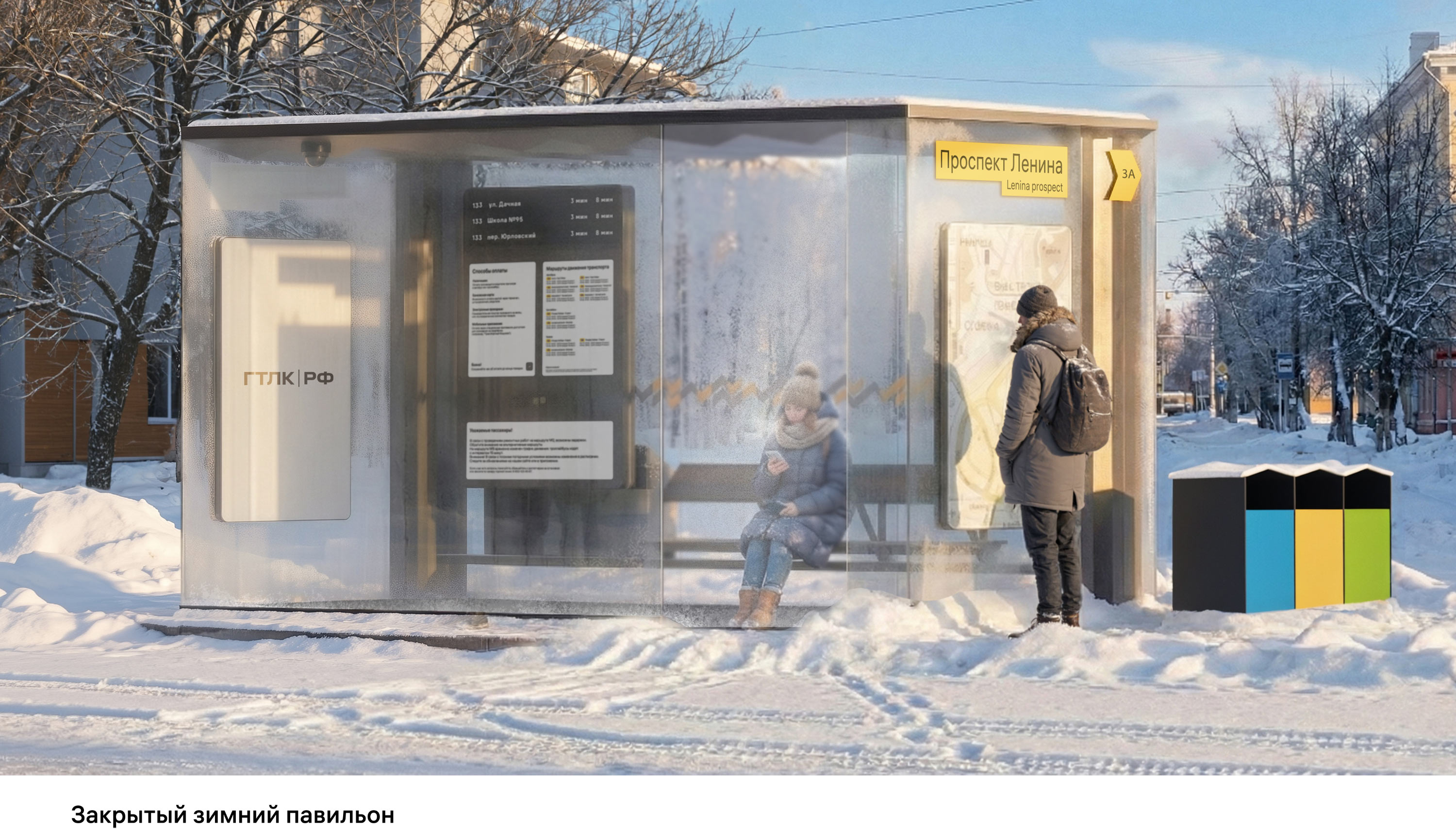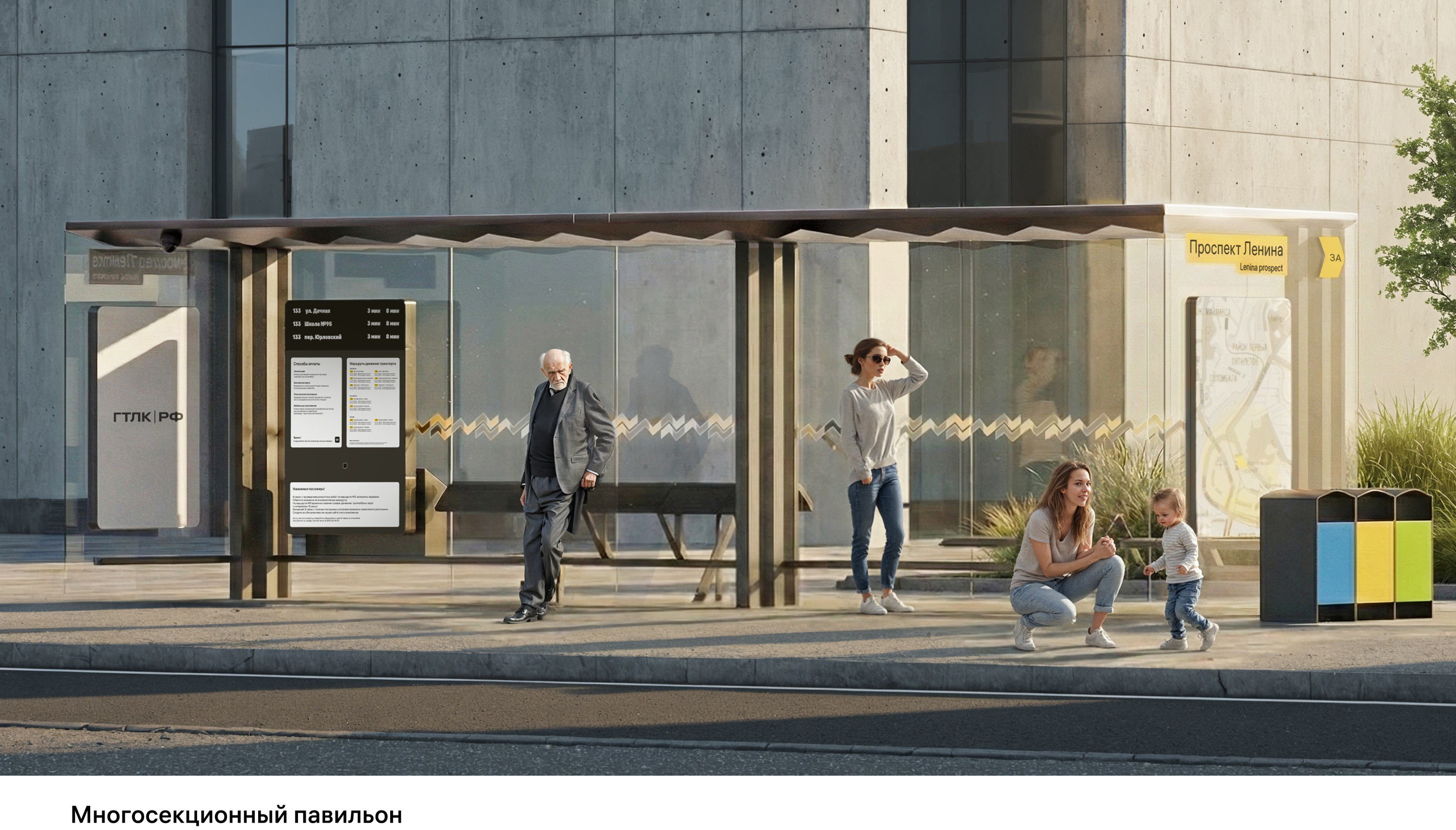 Special attention is paid to pavilions: a size-type constructor has been developed — from compact shelters to multi-section hubs. In regions with harsh winters, pavilions with heating are installed, where it is comfortable to wait for transport even in frost. The design of the roofs rethinks familiar forms of slate canopies, giving them a modern look. Built-in niches for sand and reagents rid the streets of untidy boxes.