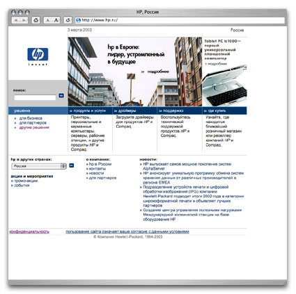 The first version of the Hewlett-Packard Russian website was created by Art. Lebedev Studio on March 21, 1997.