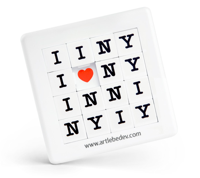 In any combination this fifteen puzzle announces its love to the city of New York. But it does not make it any less challenging to puzzle out.