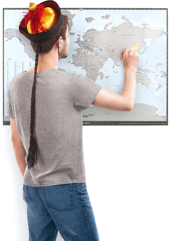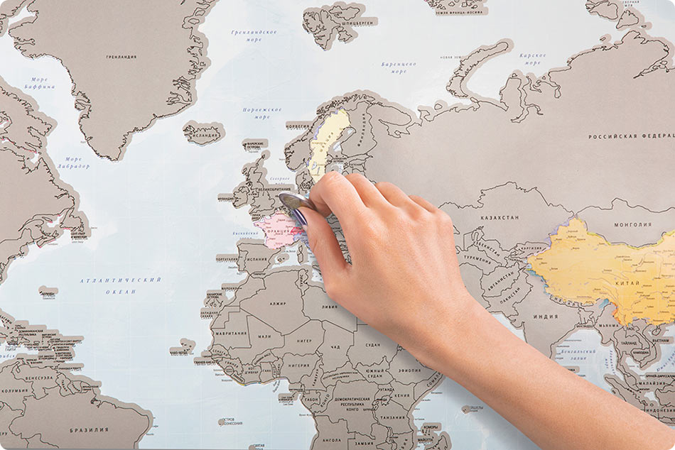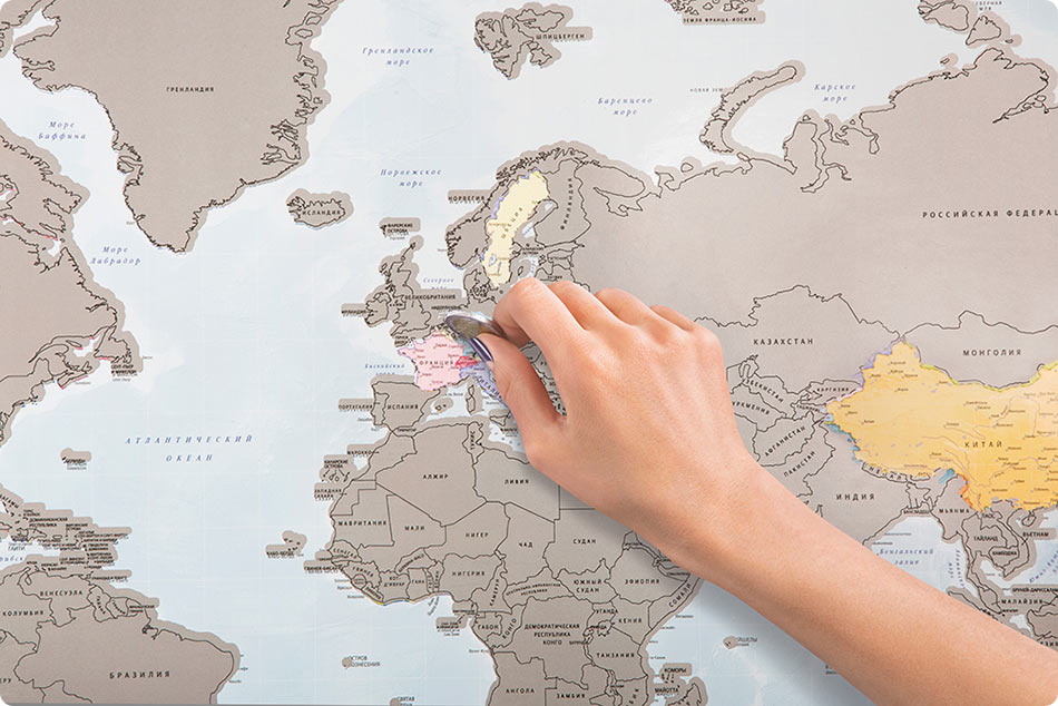 Special coating allows to easily mark visited countries: removing the top layer reveals a colorful world map.