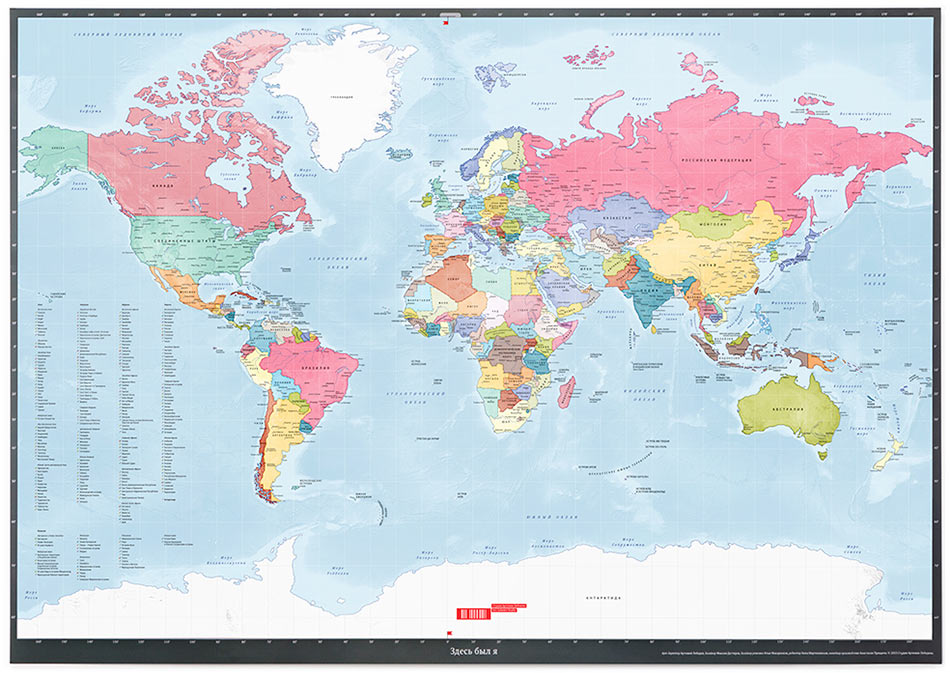 I Was Here world map is a tourist’s personal diary that makes every trip unforgettable. In the second edition borders of countries and territories were corrected and updated and missing cities were added.