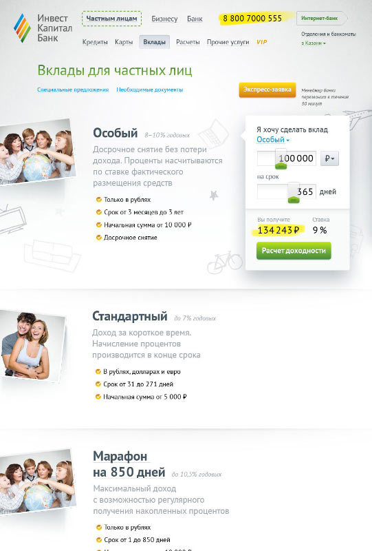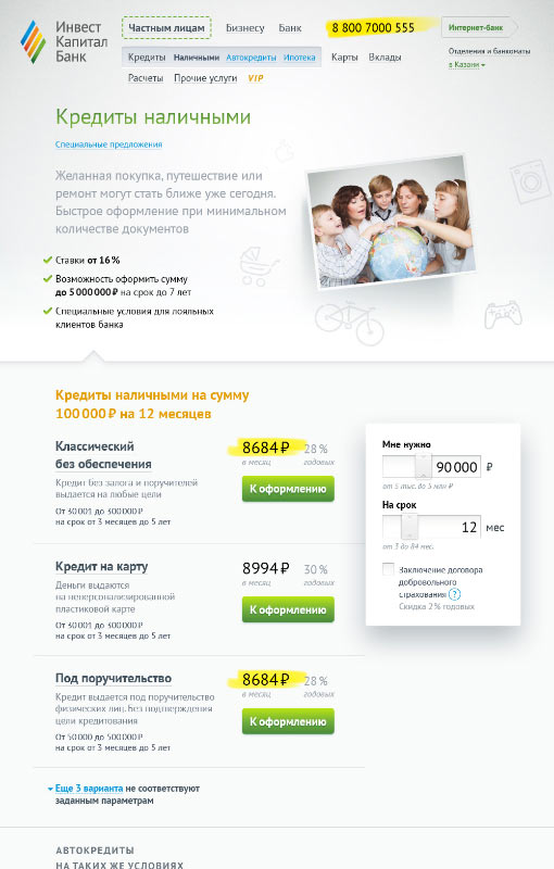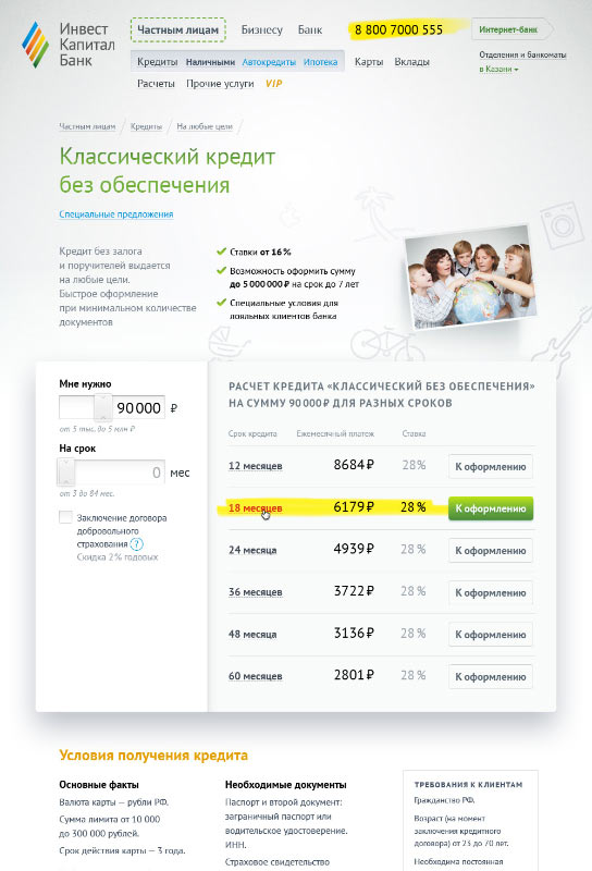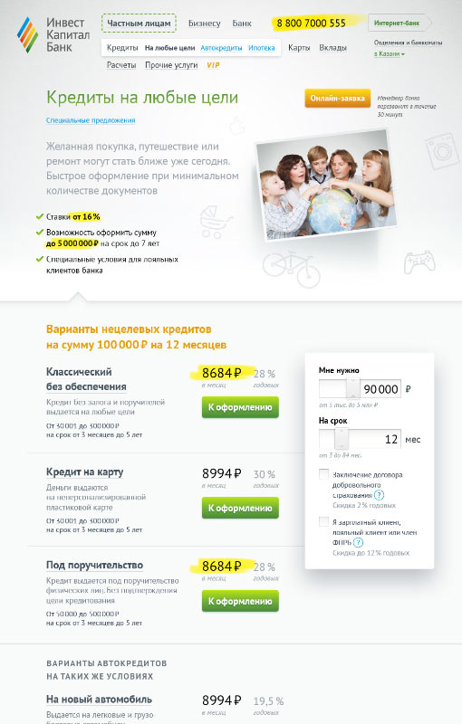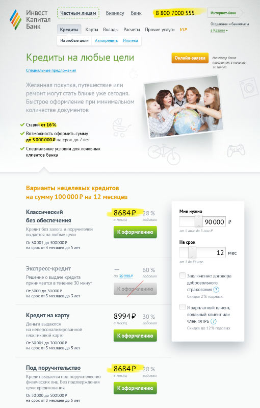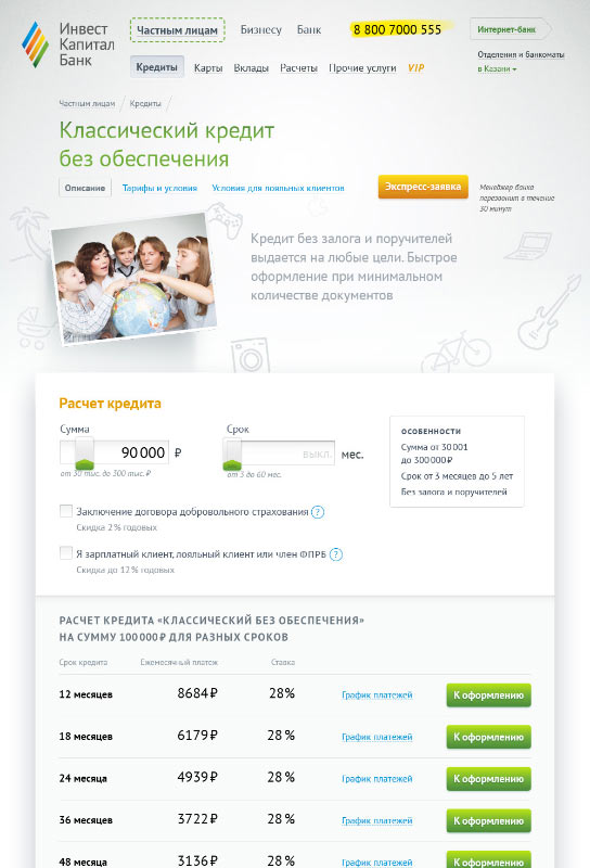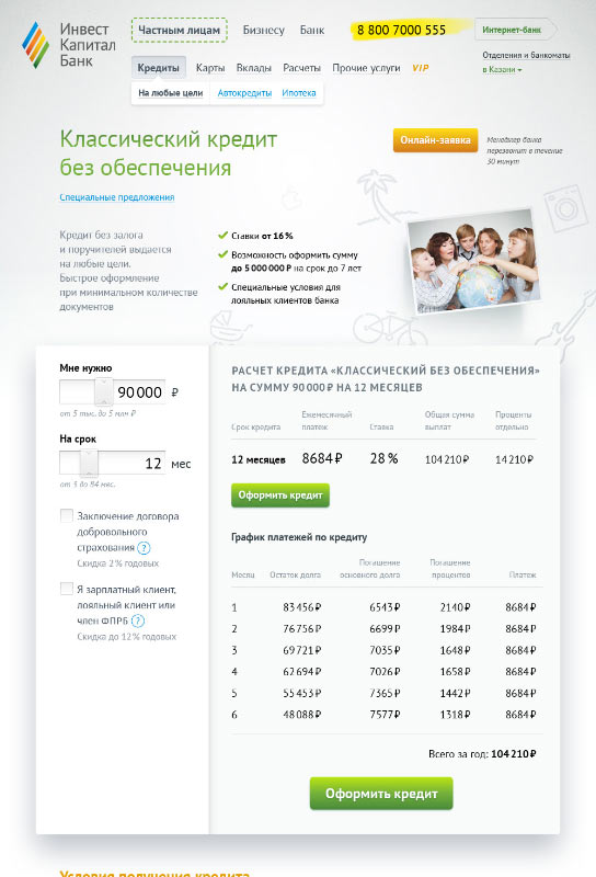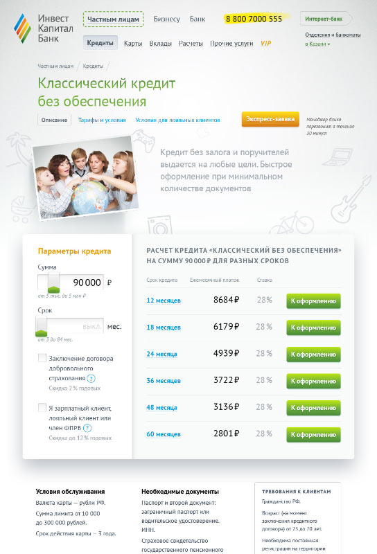 The bag looks nice. Screw the menu, we need only loans there. Nothing should steal attention from them. Wait, where are the calculation results? Displaying them. And adding some graphic elements—an integral part of the recently updated bank’s corporate identity.