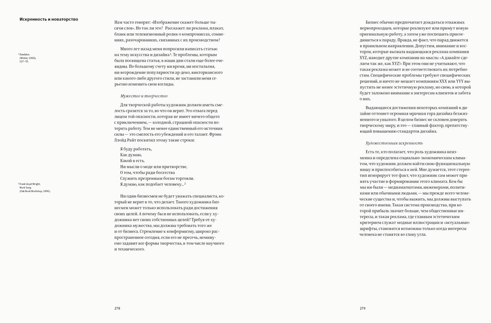 Receiving the translated text from the editors. Deciding on the proportions of the book. The original has the ratio of 3:4, plus the book includes many examples of magazine advertising printed with bleed, so of all studio formats only 220×290 mm will work. Trying to add margins between paragraphs preserving the blanks.