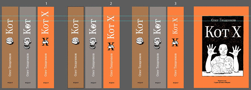Designing the cover. Checking how the spine of the new book will look next to the old ones.