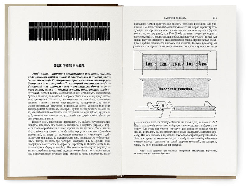 This book published in the late 19th century today still remains the only original substantial Russian work on typesetting, page layout and typography. Until the middle of the 20th century most of the Soviet publications on the subject used extracts and illustration from Kolomnins monograph.