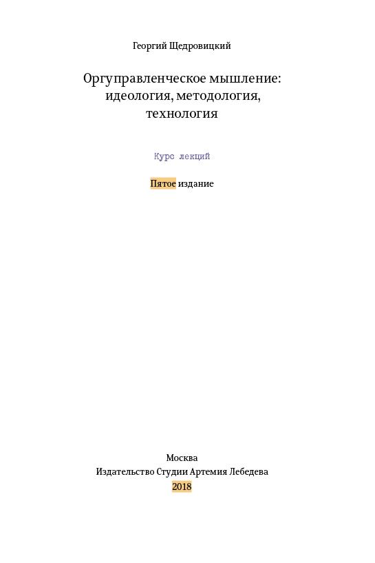 Editions: Third Fourth Fifth The making of Organizational Management Thinking: Ideology, Methodology, Technology by Georgy Schedrovitsky, Fifth Edition Process Overview Process