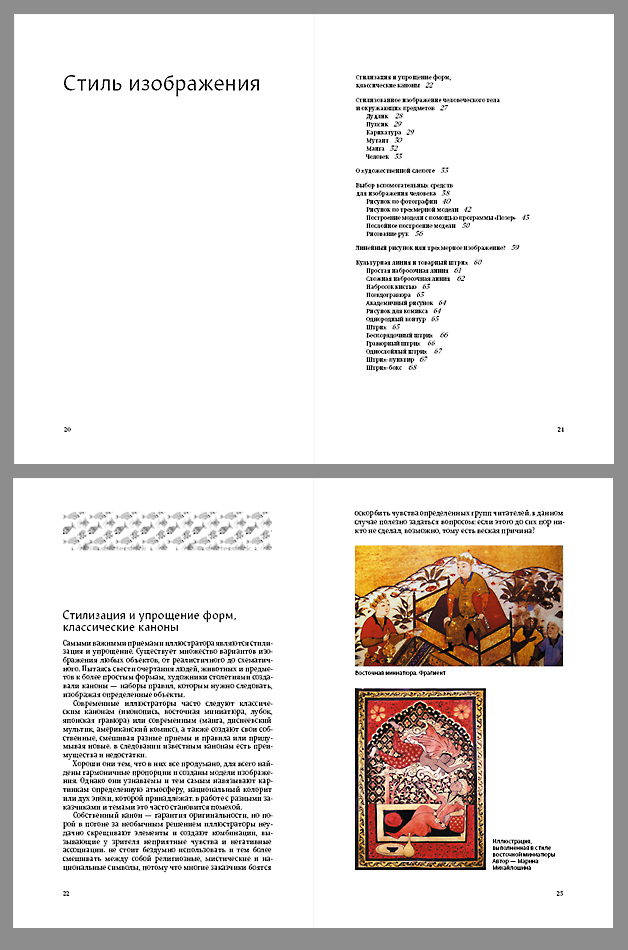 Next challenge: should we open each chapter with an outline of its topics and a full-spread illustration? And still, what face to pick for the titles?