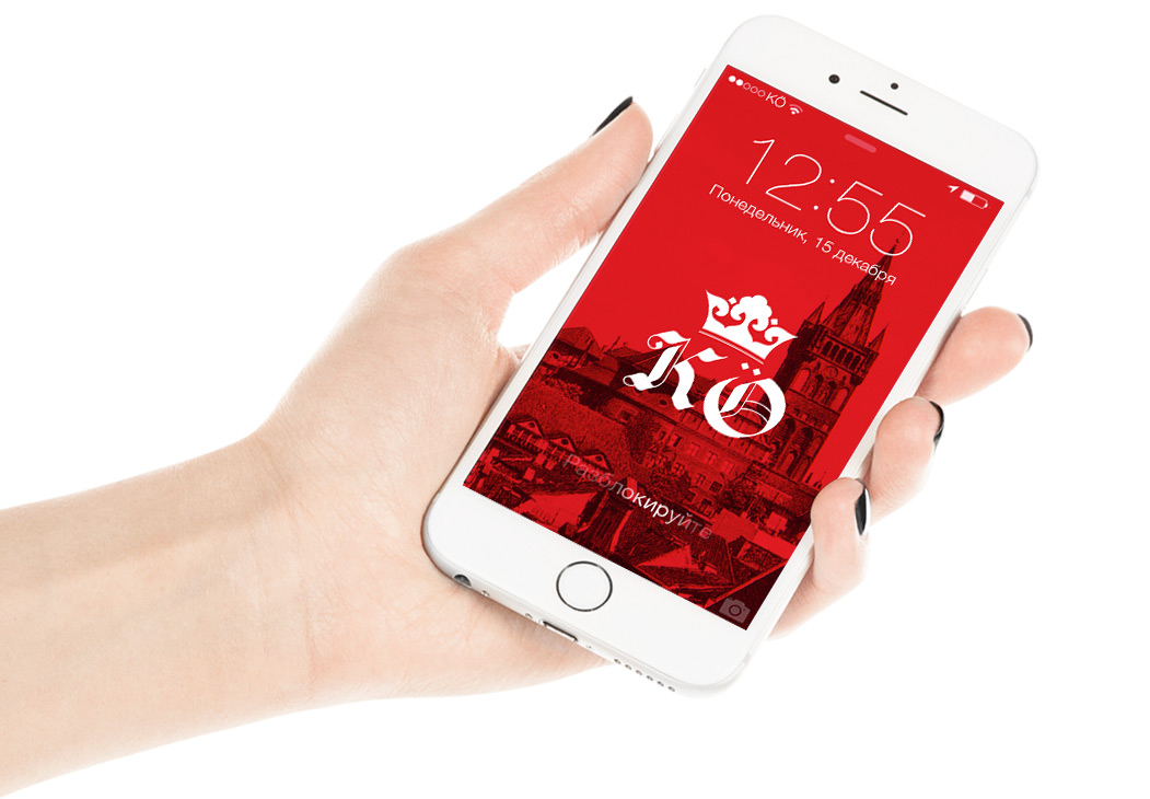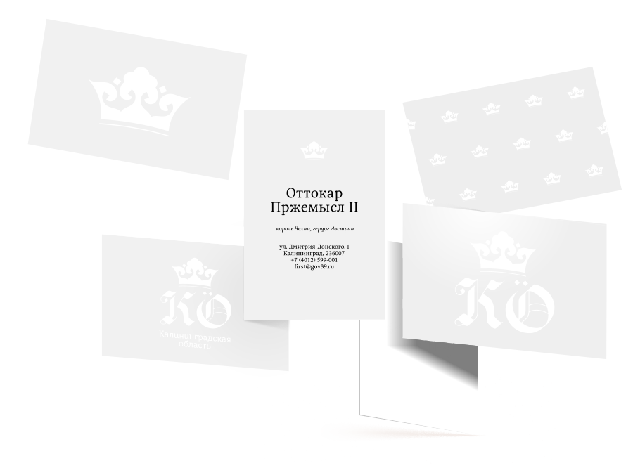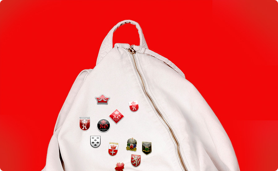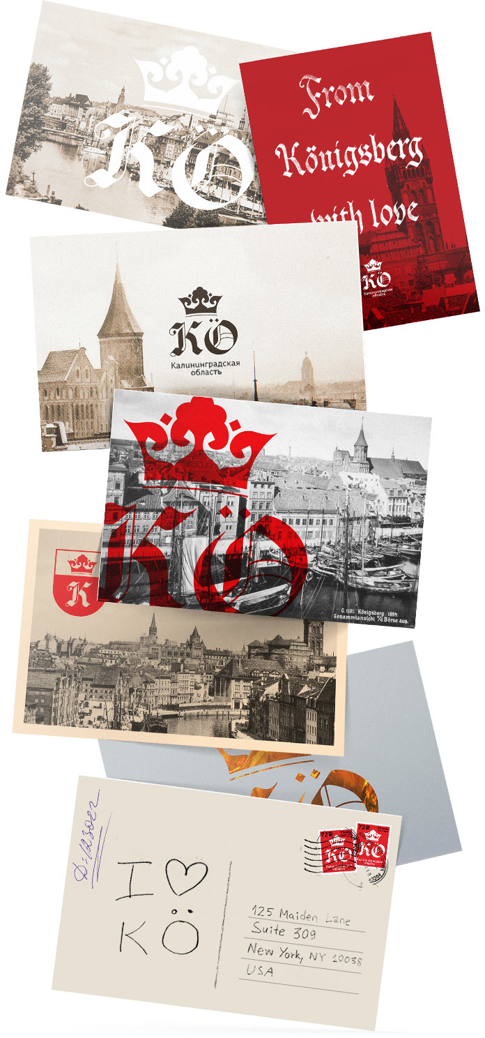 The Kaliningrad Oblast acronym (KÖ) supplemented in the logo by the umlaut, refers to the Prussian name of the city, Königsberg. The letters are designed in the Gothic style and feature calligraphic elements. Amber appears in the logo in the form of rhombus-shaped dots.