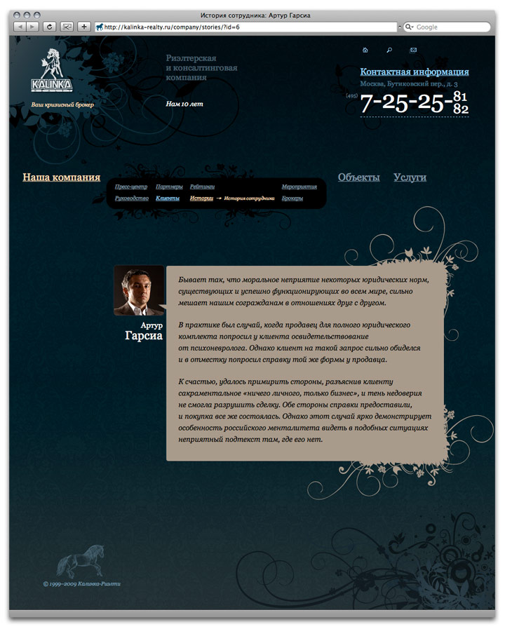 Kalinka Realty is the first Russian elite real estate broker dealing in the most expensive residential and office property in Russia and abroad.