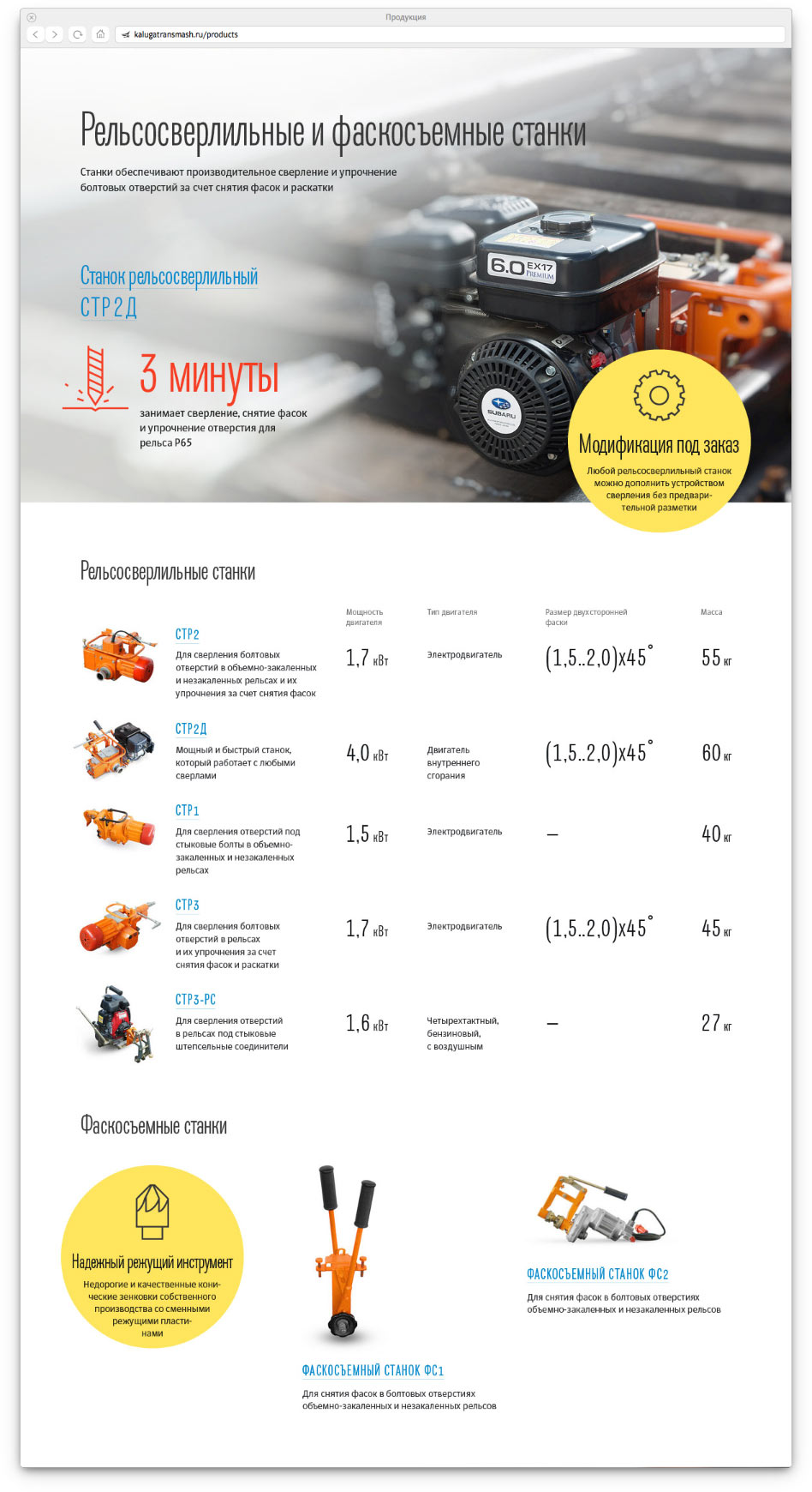 Kalugatransmash is one of Russia’s oldest plants that produces power tools for railway construction and repair. A website that demonstrates the scale of the enterprise and presents its production technologies, currently produced models and history of the plant was created at the studio.