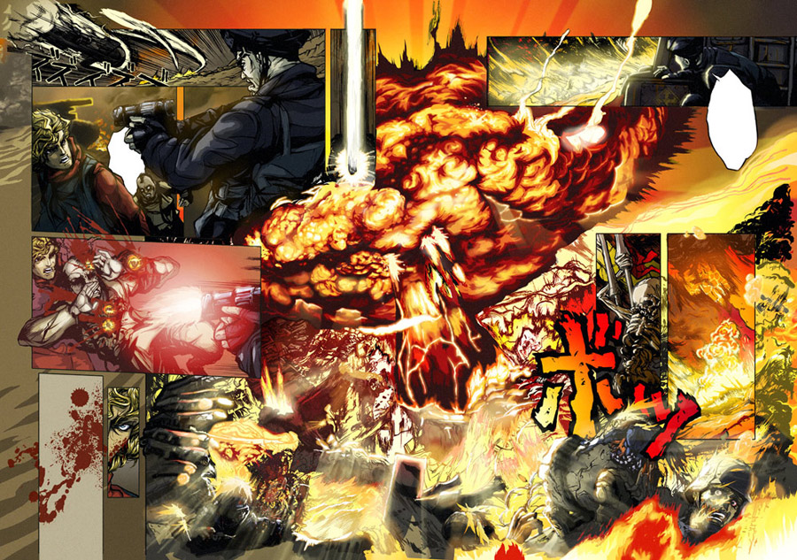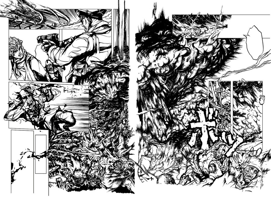 Finished double-page spread in color.