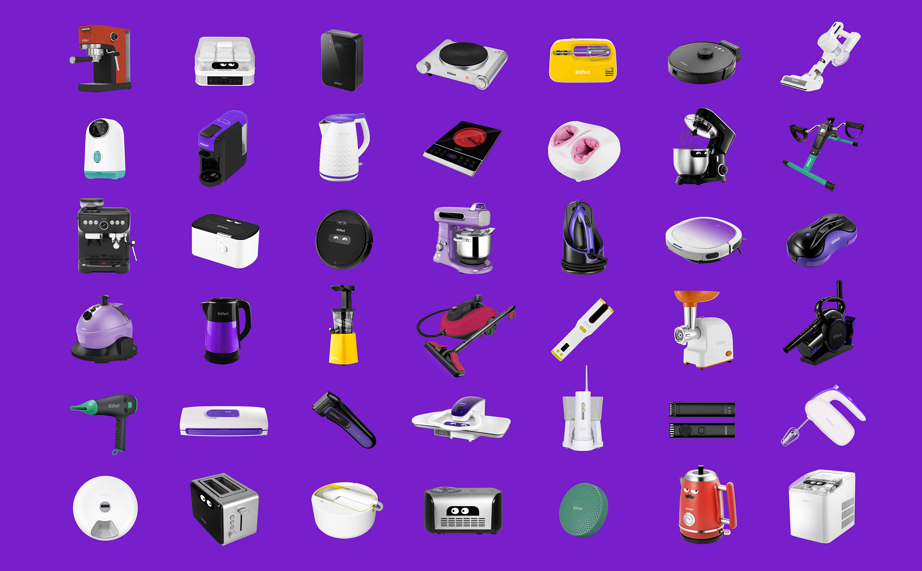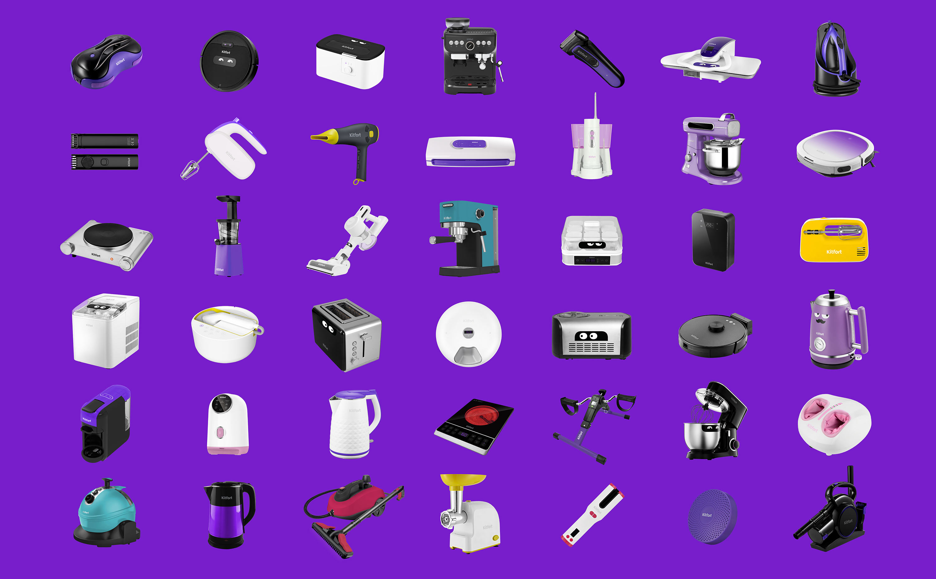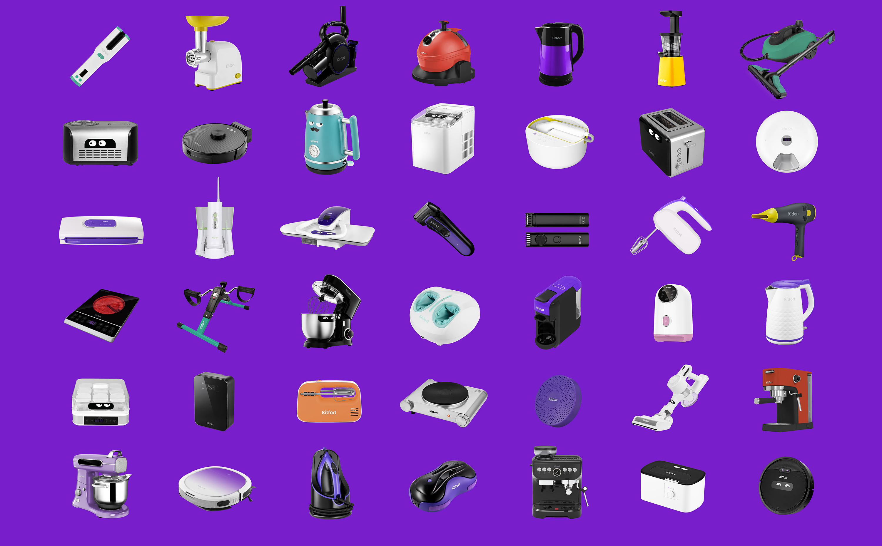 Kitfort manufactures appliances for home, constantly expanding its product range. An image that allows the company’s products to stand out among the competition and combines many different products into a flexible system was created in the studio. As a result, several design lines were developed.