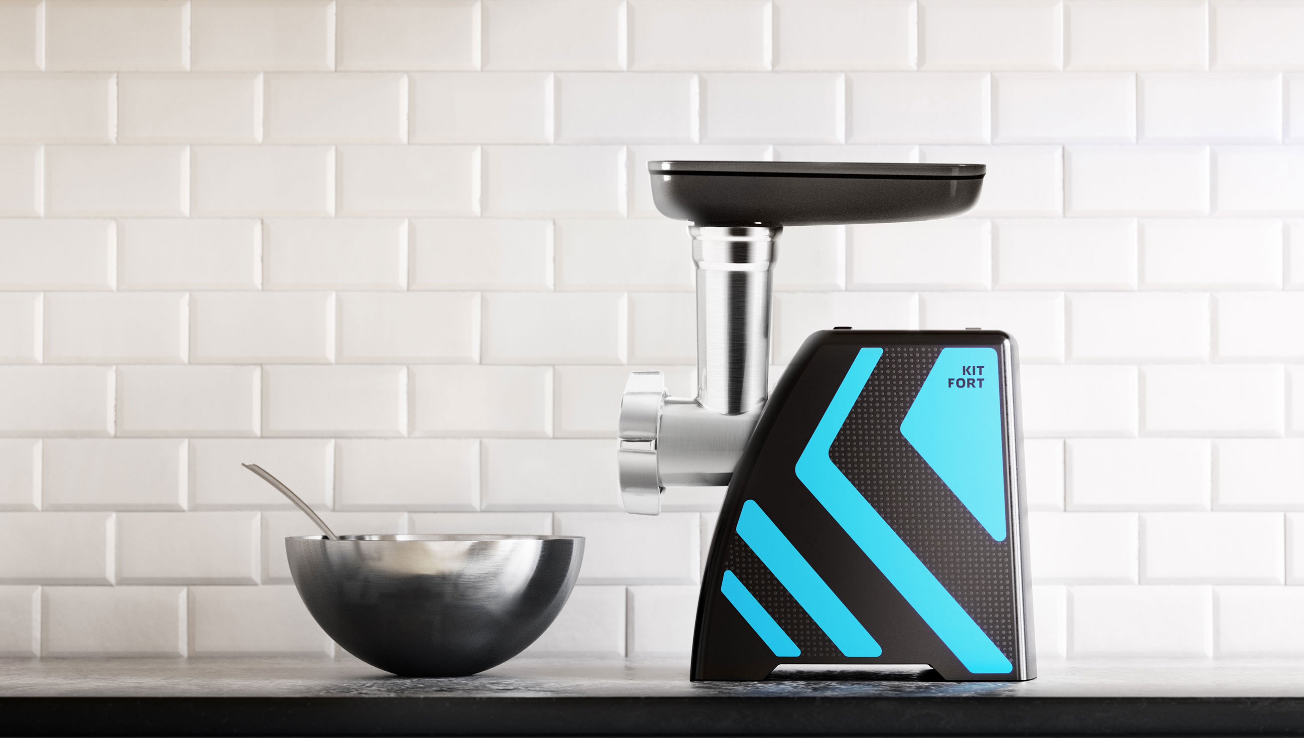 Kitfort is a Russian manufacturer of household appliances. The company sells its products primarily online. To make Kitfort meat grinders stand out in online stores, a graphic design emphasizing the beauty and power of the devices was created at the studio.