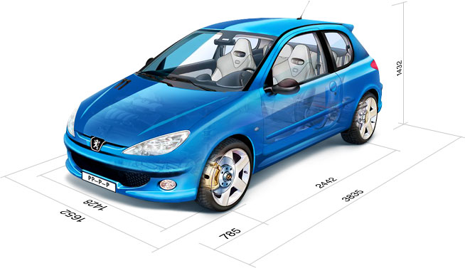 The page helps the visitor learn about Iran Khodro Industrial Manufacturing Co. that produces Peugeot 206 and lists the cars’ technical characteristics with various modifications.