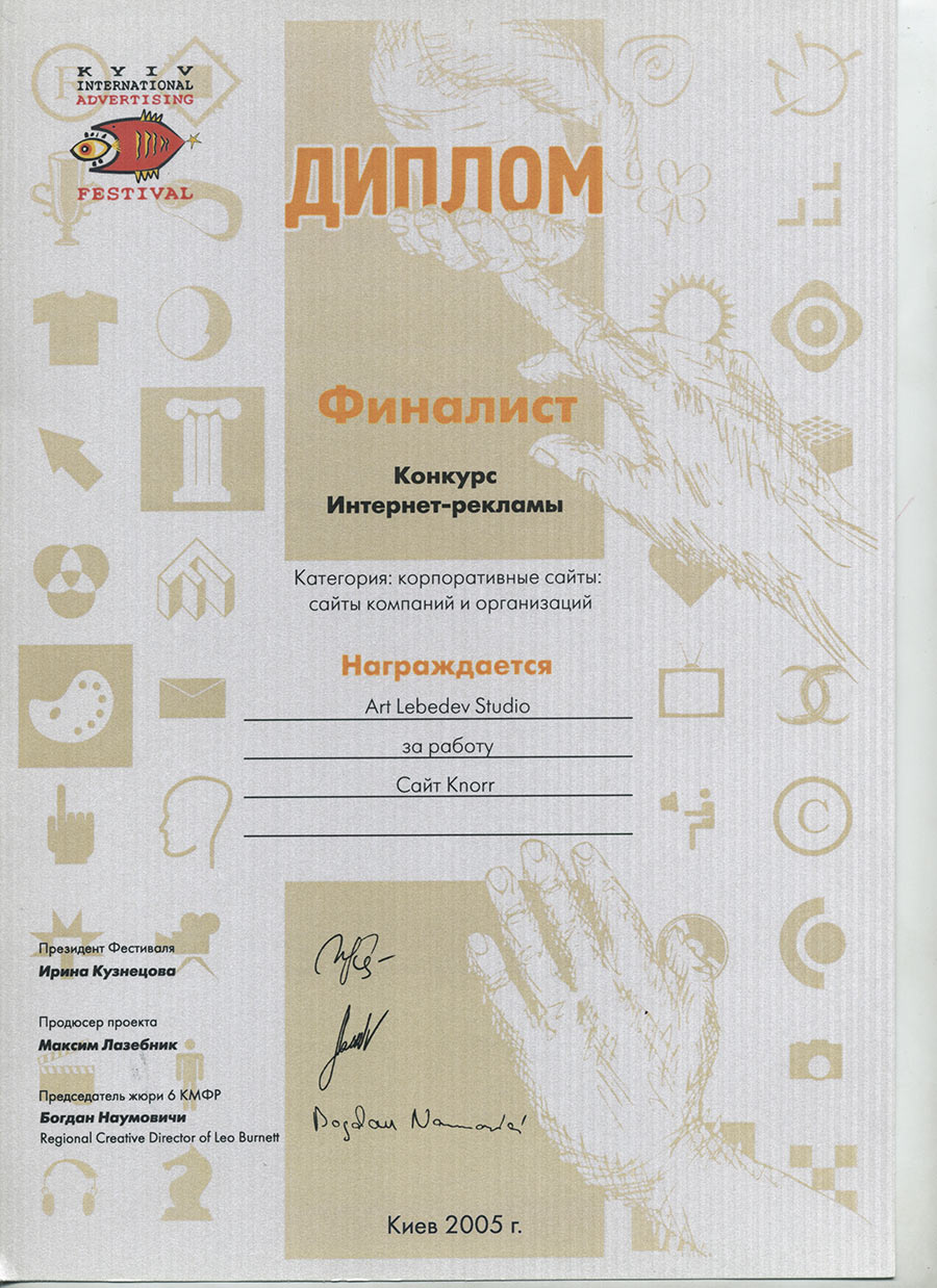 Kyiv International Advertising Festival Category: Corporate Websites. July 2005.