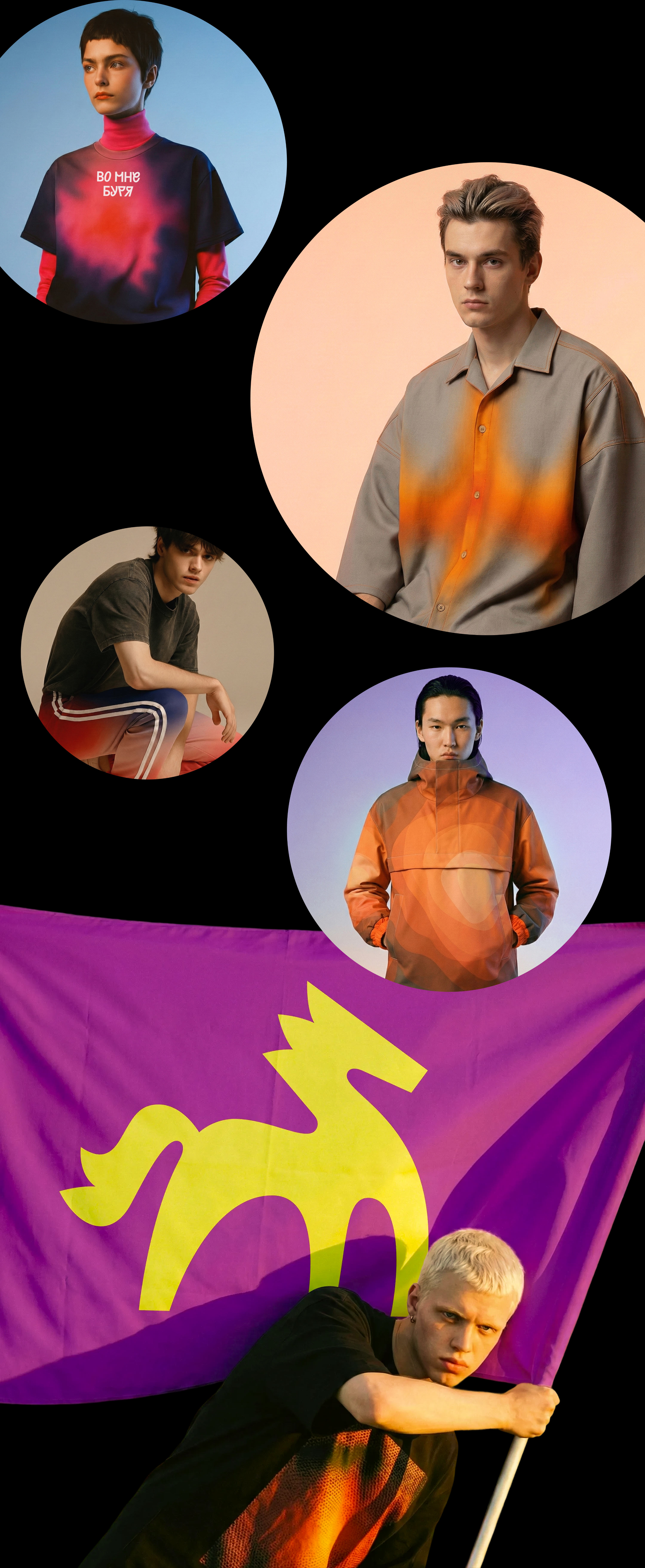 The “inner flame” of the new generation bursts out of all graphic elements. The fiery mane is a symbol of endless charge, determination and rhythm. The flaming “Youth Code” works on the principle of a construction set: all elements freely expand and combine, resulting in a creative tool for all occasions.