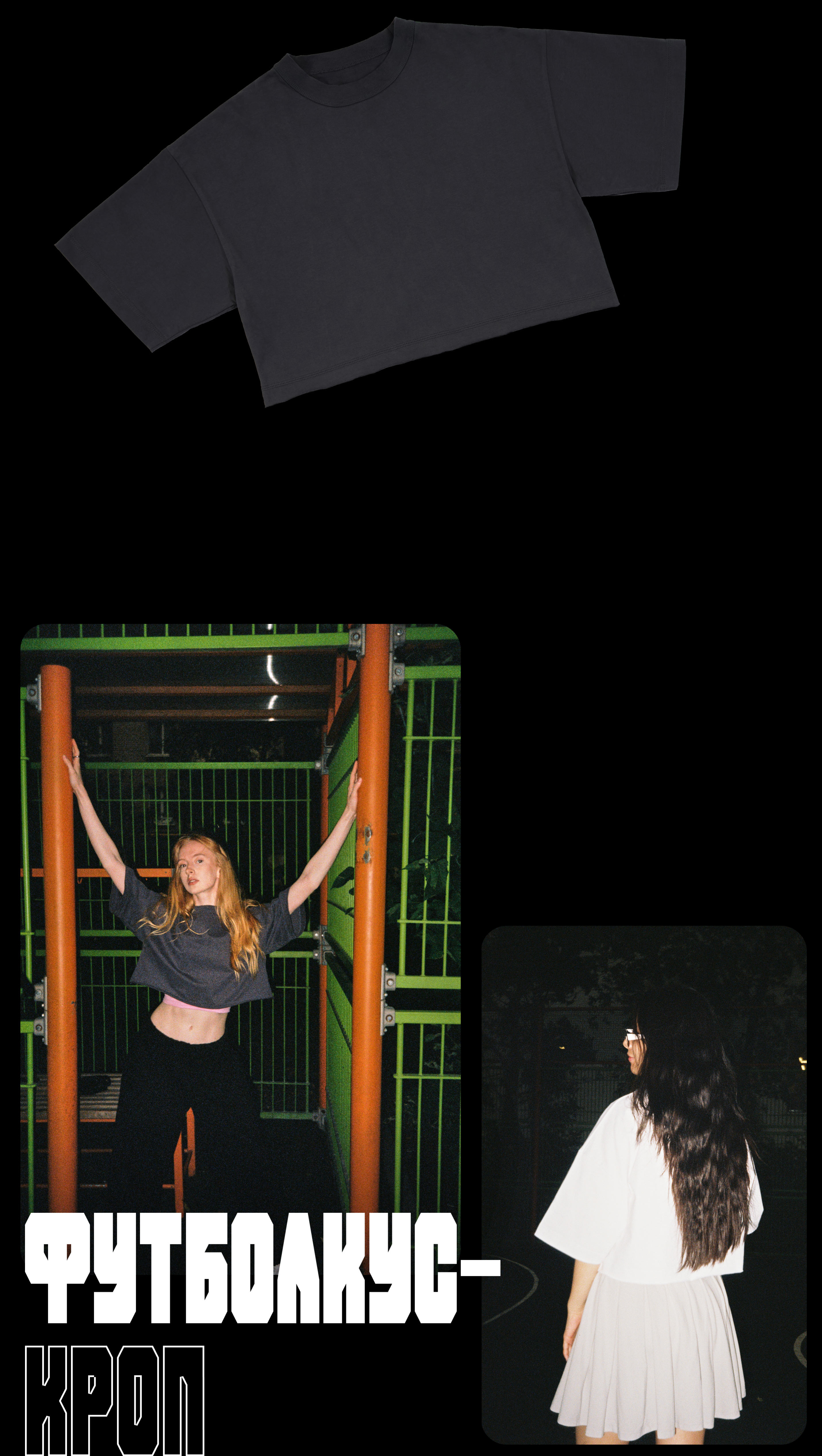 Kropus-1 is a series of modified oversized T-shirts, available in two styles: a tank top and a cropped T-shirt.