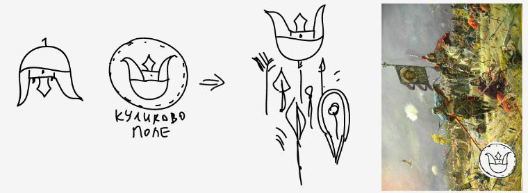 The Kulikovo field is covered with stipa (spear grass). Building on this idea by adding an arrow which also becomes a blade of grass.
